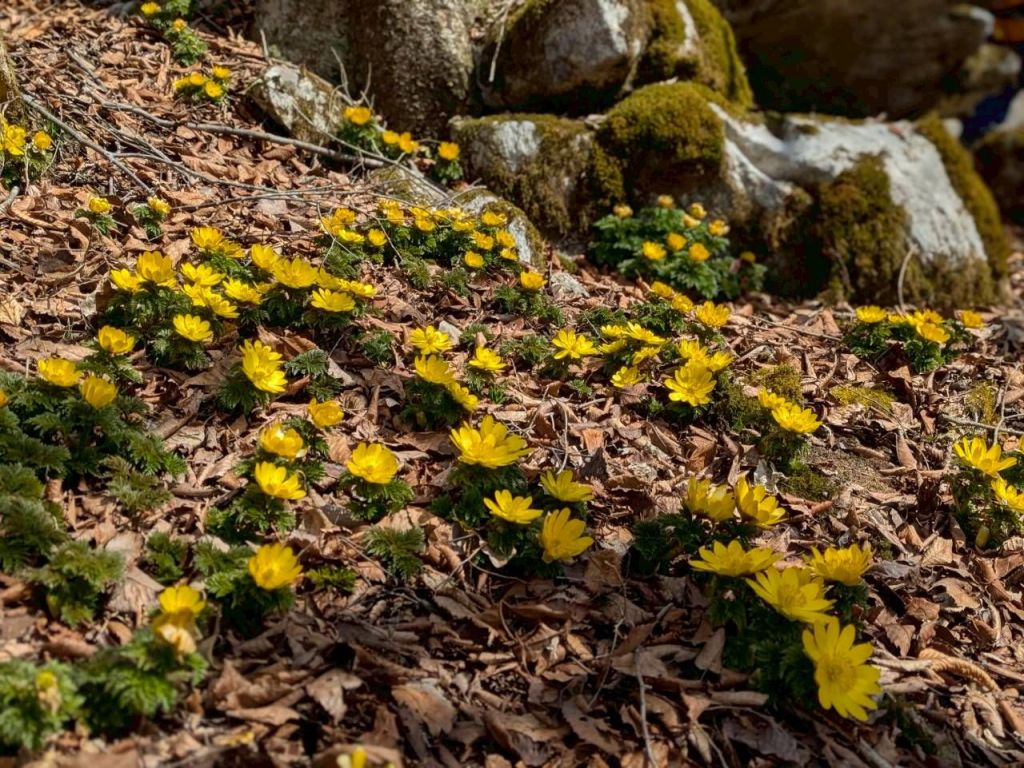↑3月14日鍋尻山にてフクジュソウの群生。by村田